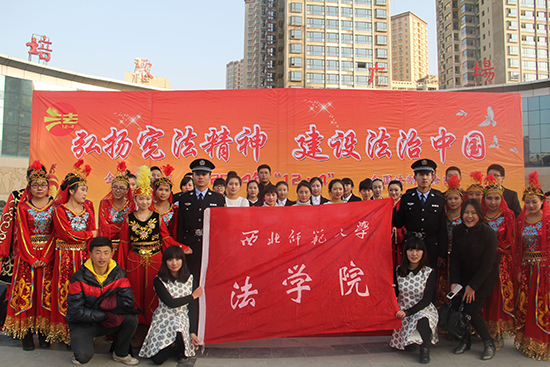 按照全省法治宣传教育“一地一精品工程”的要求,法学院加强与兰州市、安宁区司法局的合作,2014年12月在学院成立了“兰州市大学生法治宣传教育基地”, 打造了面向全市大学生的法治宣传教育阵地,基地通过举办高校法律知识竞赛、模拟法庭、法律文化节等多种形式,组织志愿者开展普法宣传、送法进社区、进企业、进宗教活动场所等活动,进一步助推和提升了社会法治建设的水平,开辟了学校和地方合作开展普法宣传教育工作的新途径。