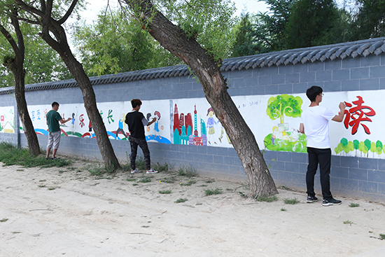西北师大书法协会、魔术协会、笛萧社团及“爱尚微公益——爱在远山”实践项目志愿者们为小学生表演了民族舞蹈、竹笛重奏、书法展示、互动魔术等形式多样的文艺节目。美术学院青年志愿者为春台学校创作了校园文化墙。