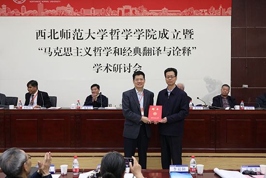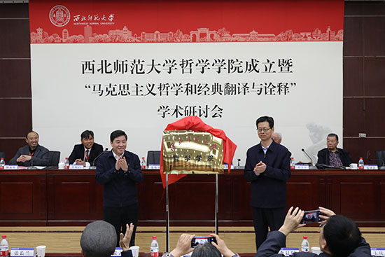 来自北京大学、山东大学、香港中文大学、浙江大学、中山大学、华东师范大学等近30所高校和科研院所代表出席揭牌仪式。西北师大相关学院、相关部门负责人,离退休教师代表、学生代表近百人共同见证了哲学学院成立。