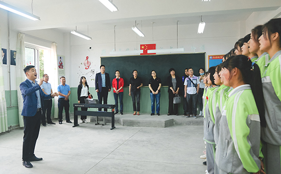 邓小娟一行先后深入研究生支教团成员宿舍,锁南中学舞蹈室、合唱室、美术室等地,实地了解志愿者的学习、工作、生活情况和锁南中学体育美育情况,并召开座谈会,与当地有关部门负责人、支教团成员举行座谈。