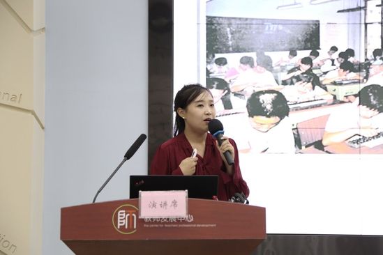参赛教师们以朴实的语言、真挚的情感、饱满的激情,深刻诠释着对他们在教学工作中的学思践悟,充分表达了他们对教育事业的无限热爱与追求。毕吉利老师在《教师的“功利”幸福》演讲时说:“在教师的世界里,存在两种幸福,一种是静待花开,品鉴满园桃李尽芳菲的喜悦,一种是体验生命,实现自我价值的满足。如果说前者是教师无私奉献的真实写照,那么,后者则是教育给予教师最殷切的回馈”;赵晓霞老师在《“教育之母”与“青年之师”》演讲中回顾胡德海先生的教诲时说:“从我们想成为我们老师的样子,到学生想成为我们的样子,再到学生的学生,想成为他们的样子!正是秉承了师范教育的根本和灵魂:学不厌,教不倦。”