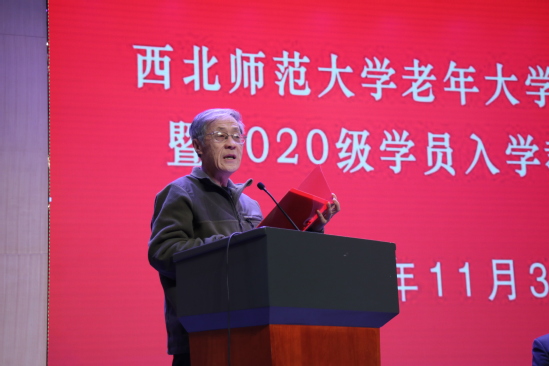 西北师大离退休职工党委委员、教协理事、老年大学学员代表田玲在发言中表示,我们将在老年大学学习期间,安心学习、增长见识、陶冶情操、提高素质、发展友谊,加倍珍惜来之不易的学习机会,严格遵守学校的各项规章制度,加强自我教育、自我管理、自我服务、自我监督,将老年大学建设成为我们文明、和谐、温馨的精神家园。