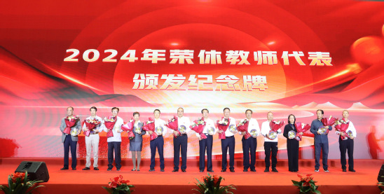 阎岩为2024年校级教学名师颁奖;学生代表为第十届学生心目中“我最喜爱的教师”颁奖。