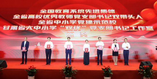 会上,贾宁为荣休教师代表颁发纪念牌,并为全国教育系统先进集体、第三批新时代甘肃省高校优秀教师党支部书记“双带头人”、第三批新时代甘肃省中小学党建“示范校”、第一批新时代甘肃省大中小学“双优”党支部书记工作室、第三批新时代甘肃省高校党建“标杆院系”、第三批新时代甘肃省高校党建“样板党支部”、教育部第四批全国党建工作“样板支部”颁奖。