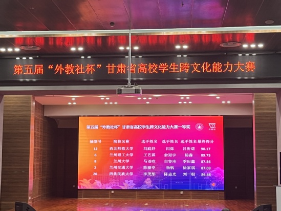 10月19日,由甘肃省教育厅主办,兰州理工大学、上海外语教育出版社承办,甘肃省高等学校外国语言文学类专业本科教学指导、认证与教材建设委员会和甘肃省大学英语教学指导与教材建设委员会协办的第五届“外教社杯”甘肃省高校学生跨文化能力大赛在兰州理工大学举行。我校文学院吕昕诺、外国语学院刘庭妤、传媒学院闪烁在教师代莉、李辉、薛小梅指导下,以第一名的成绩荣获全省一等奖,入围全国总决赛。